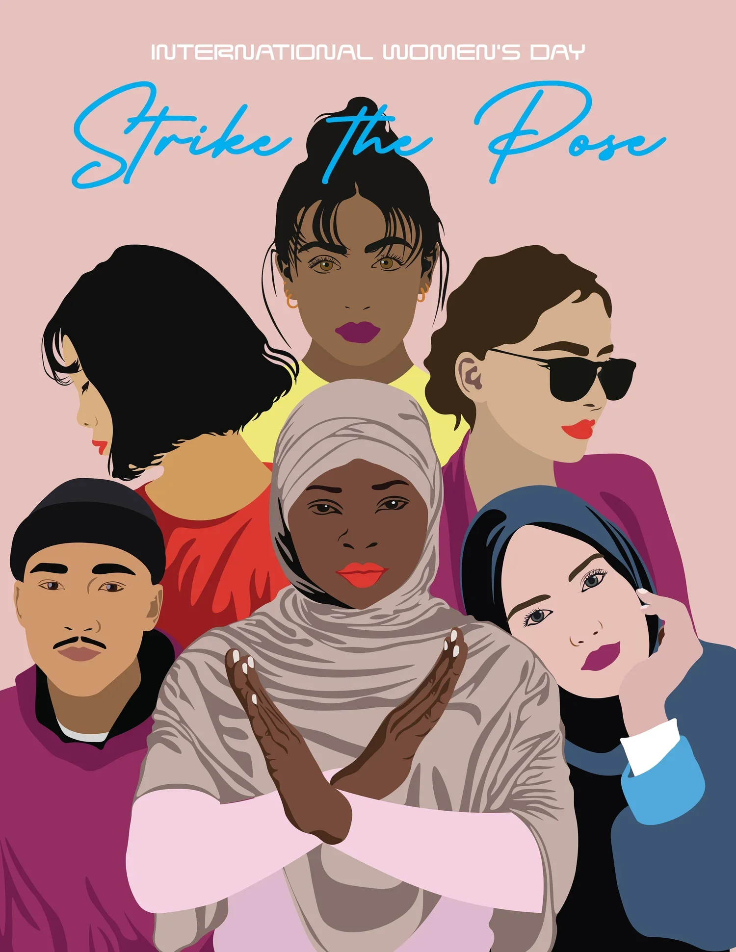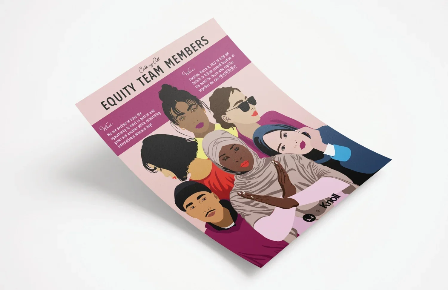 Request: design and illustrate a series of marketing collateral calling all MillerKnoll employees to participate in striking the “International Women’s Day” pose.
