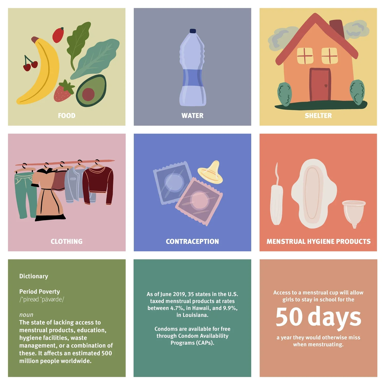 Request: Design, illustrate, and animate a social graphic advocating for women’s right to access period products, highlighting the broader issue of period poverty in America.